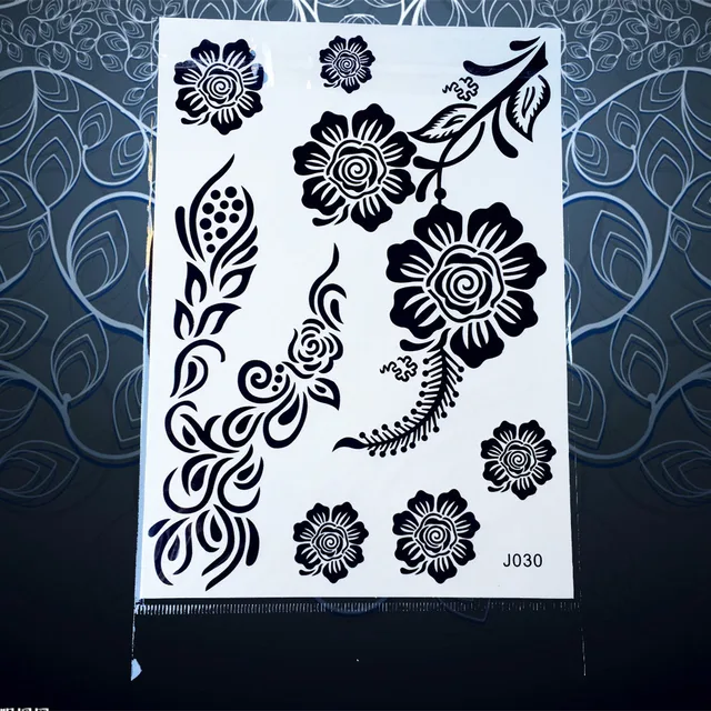 Us 0 87 23 Off 1pc Hot Women Body Art Temporary Tattoo Black Ink Henna Flower Blossom Design Waterproof Tattoo Arm Shoulder Paste Paper Pbj030 In - Download