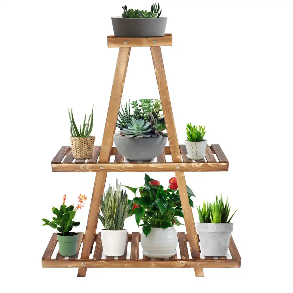 Kayu Desain Piramida Berdiri Tanaman Bunga Succulent Pot Rak Display Balkon Taman Dekorasi Bunga Berdiri - Download