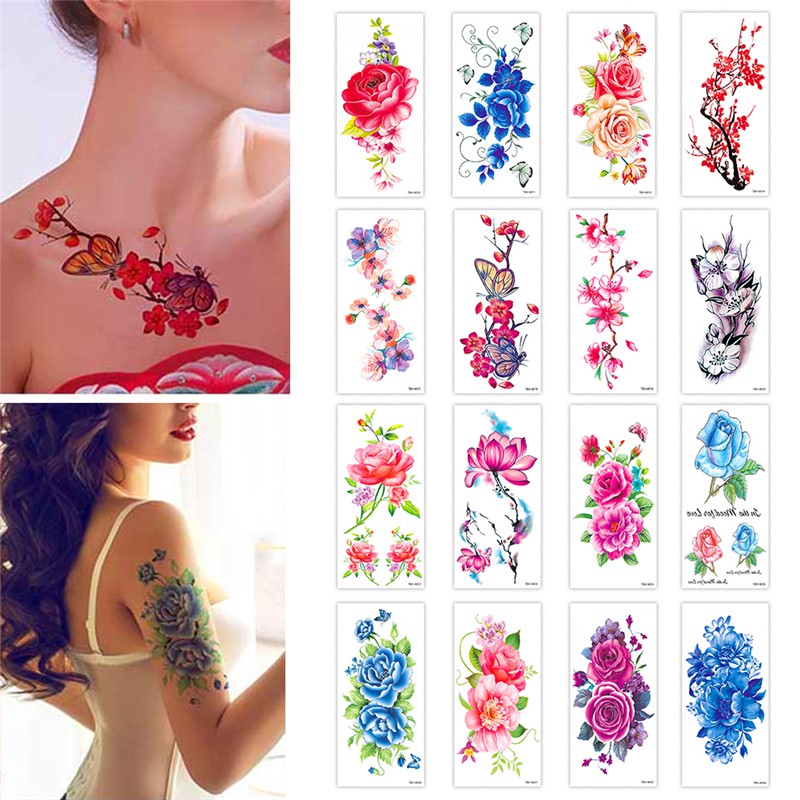 Sementara 3d Kupu Kupu Bunga Mawar Tato Sticker Decal Wanita Seni Tubuh - Download