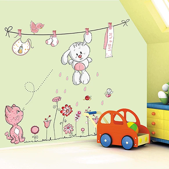 Removable Kartun Pink Bunga Dan Kecil Yang Lucu Kelinci - Download