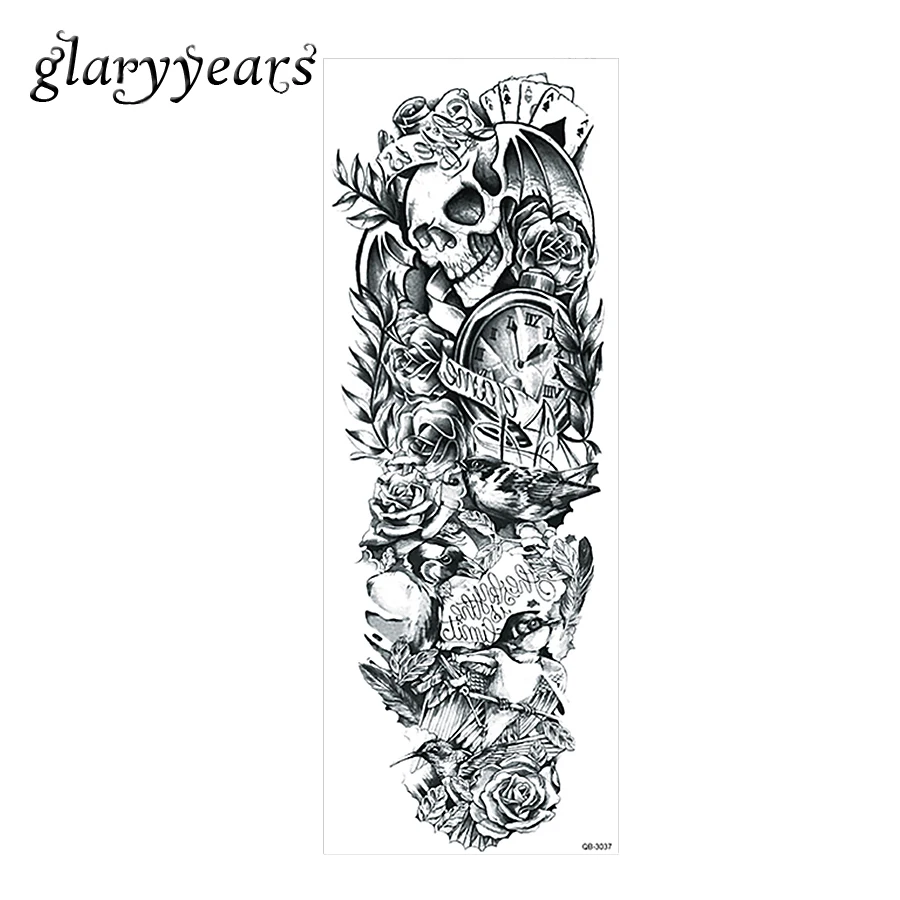 Us 1 56 21 Off 1 Lembar Besar Besar Penuh Lengan Stiker Tato Temporer Tahan Air Tengkorak Bunga Mawar Jam Wanita Pria Tubuh Seni Tato Stiker Qb - Download