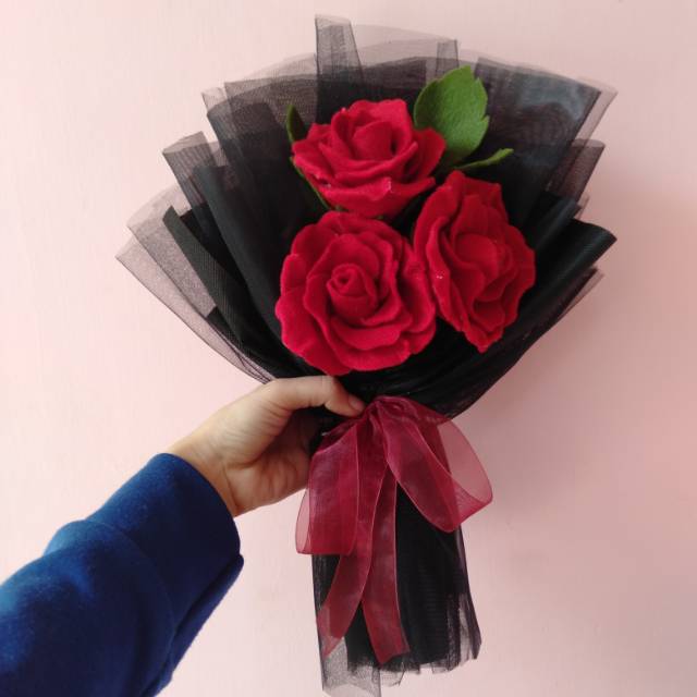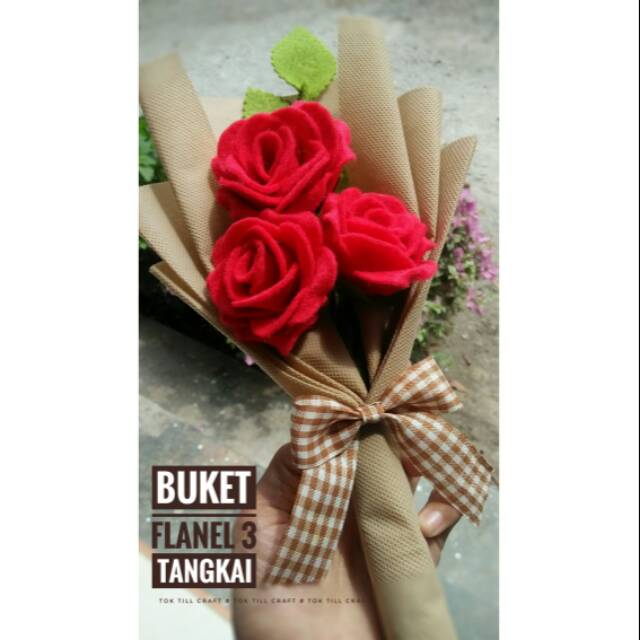 Buket Bunga Mawar Flanel Tiga Tangkai - Download