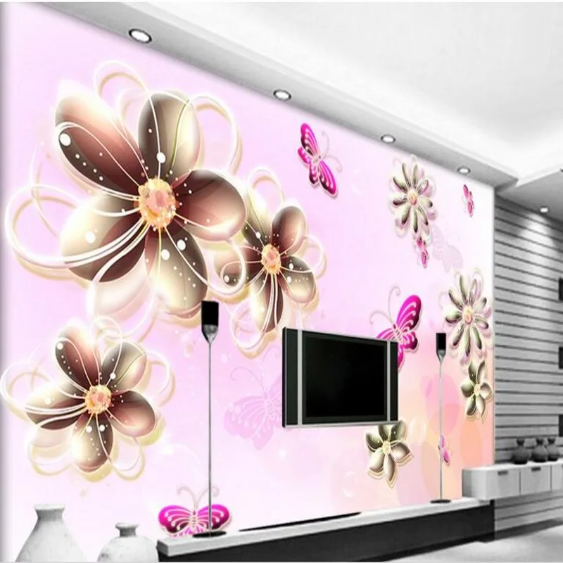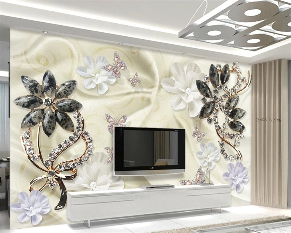 Us 8 1 46 Off Beibehang Foto Wallpaper Perhiasan Bunga Kupu Kupu Perhiasan Tv Latar Belakang Ruang Tamu Wallpaper Untuk Dinding 3 D Papel De - Download