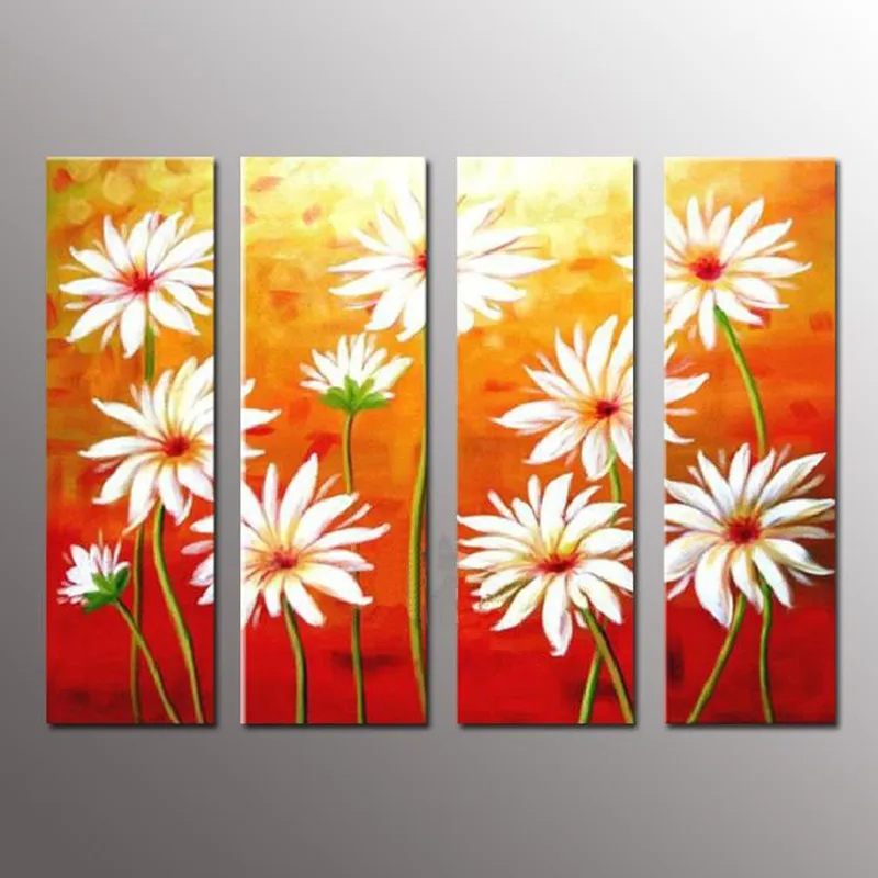 4 Panel Gambar Set Handpainted Akrilik Lukisan Bunga Daisy - Download