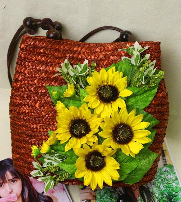 Miwind F Bunga Applique Rajutan Anyaman Rotan Tas Jerami - Download