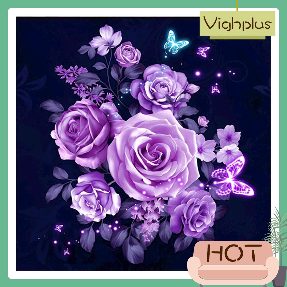 Diy Lukisan Diamond 5d Dengan Gambar Bunga Mawar Warna Ungu Untuk Hiasan Dekorasi Rumah - Download