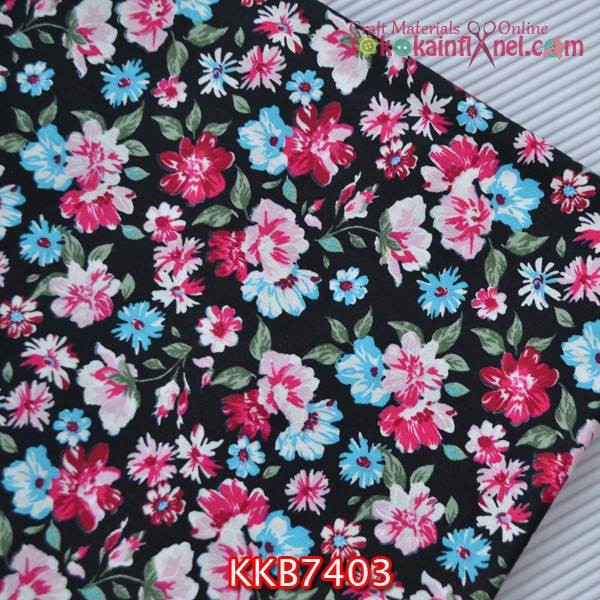 Kkb7403 Per Uk 1m X 150cm Kain Katun Jepang Bunga Dasar Hitam - Download