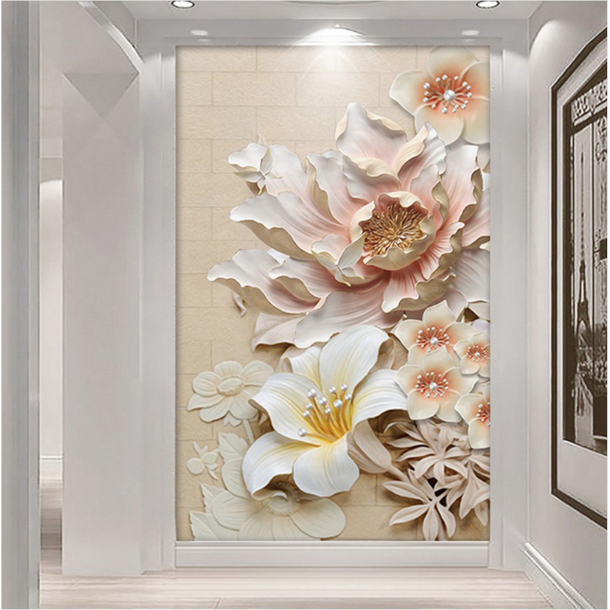 3d Embossed Flower Living Room Aisle Background Home Decor Mural Wallpaper - Download