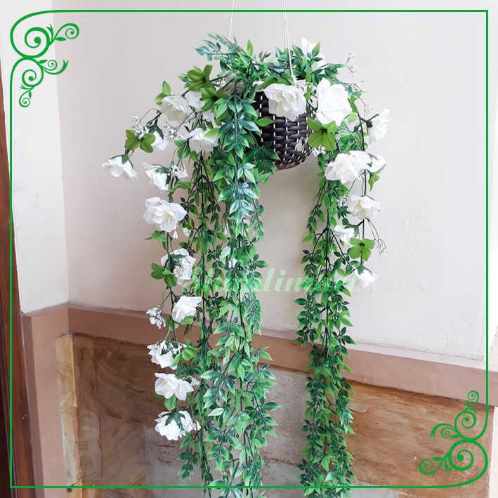 Rangkaian Bunga Mawar Artifisial Daun Rambat Coderia Vas Keranjang Gantung Hiasan Dekorasi Pajangan - Download
