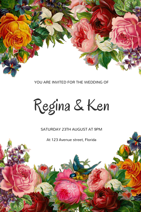 Templat Undangan Pernikahan Bunga Vintage Postermywall - Download