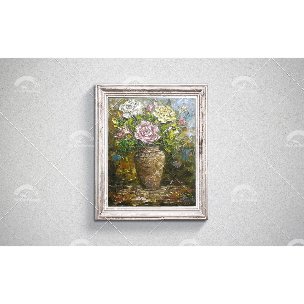 Lukisan Bunga Dalam Vas Textur Tebal Ukuran 40x50 Cm - Download