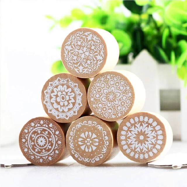 6 Pcs Retro Vintage Floral Aneka Lace Bunga Pola Perangko Stamp Putaran Kayu Karet Stamp Pernikahan Standar Seal Scrapbook Di Perangko Dari Kantor - Download