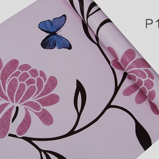 Wallpaper Sticker Dinding Premium 10 Meter Bunga Pink Kupu Biru - Download
