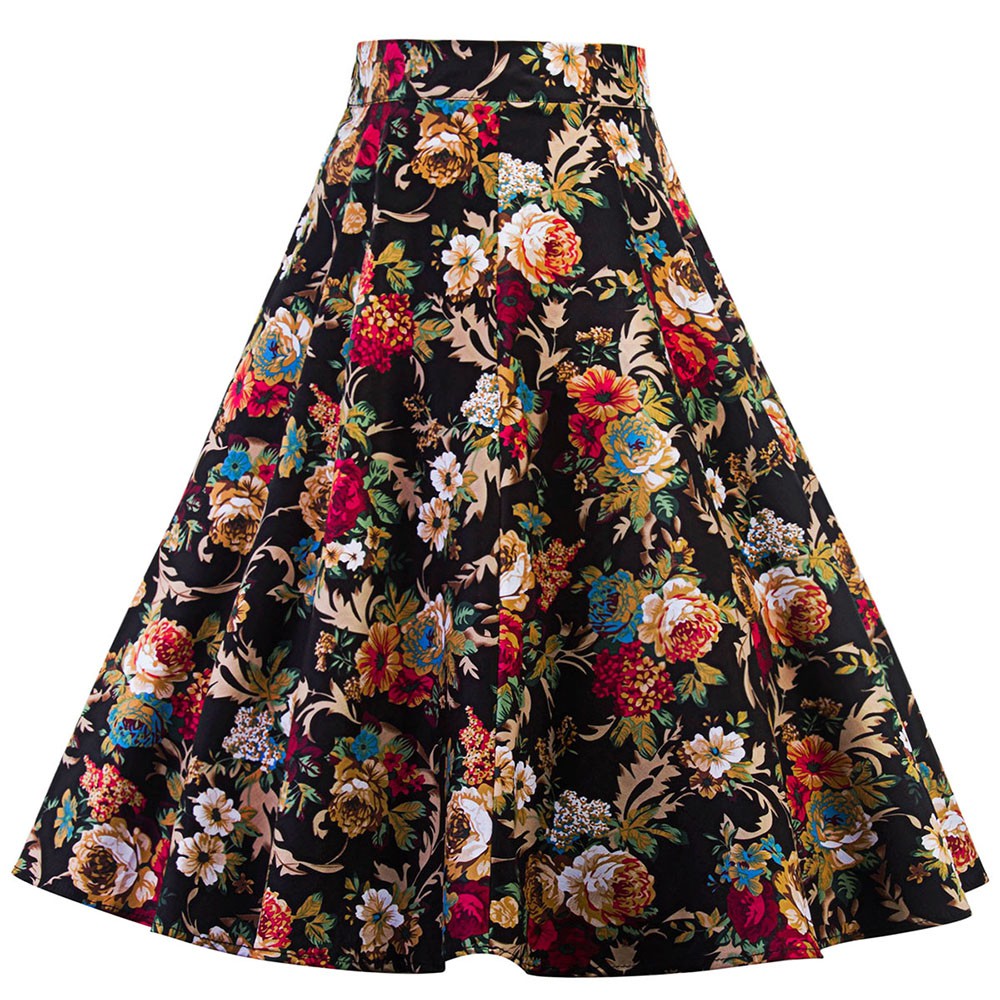 Rok Midi Wanita Dengan Model Lipit Dan High Waist Gambar Motif Bunga Bergaya Fashionable - Download