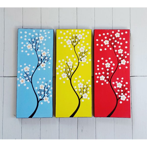 Pajangan Hiasan Dinding Kayu Lukisan Minimalis Bunga 3 Warna Nv18 3 - Download