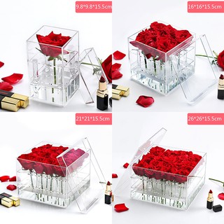 Kotak Wadah Dengan Bahan Akrilik Transparan Dan Bunga Mawar Untuk Organizer Kosmetik Make Up - Download