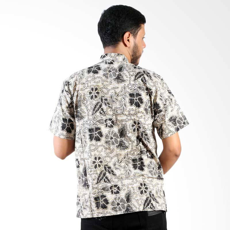 Batik Nulaba Printing Lengan Pendek Bunga Rantai Monochrome Kemeja Pria - Download