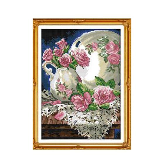 Set Kain Perlengkapan Kristik Diy Gambar Pot Bunga Mawar - Download